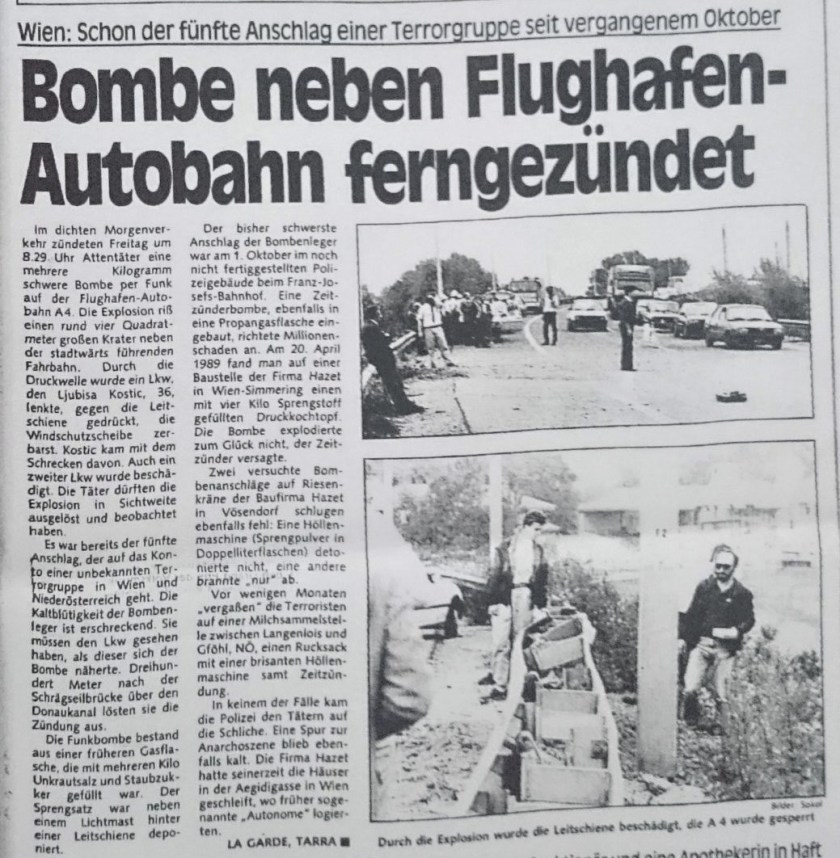 Klar ist: Der Bombenmechanismus muss mehrfach getestet worden sein, um diese Präzision sicherzustellen. Und diesbezüglich gibt es noch ein weiteres, überraschendes Detail, wie der ehemalige Mitarbeiter des Bundeskriminalamts ausführt: „Am 19. Mai 1989 gab es hier in Wien auf der Autobahn nach Schwechat einen Bombenanschlag, der nur Sachschaden angerichtet hat. Insider sagen, das könnte die Generalprobe für Herrhausen gewesen sein. Denn die Anschläge waren einander sehr ähnlich. Es war ebenfalls ein bewegliches Ziel, es muss auch eine ähnliche Fotozelle gewesen sein. Vielleicht wurde so simuliert, wie der spätere Anschlag funktionieren könnte.“