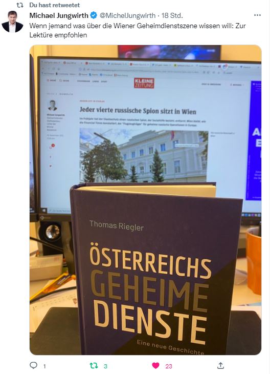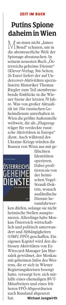 Das erste Buch über die Geheimdienste der Alpenrepublik, Rezension von Alf Mayer in Culturmag, 1.12.2022, http://culturmag.de/crimemag/alf-mayer-ueber-oesterreichs-geheime-dienste/146594